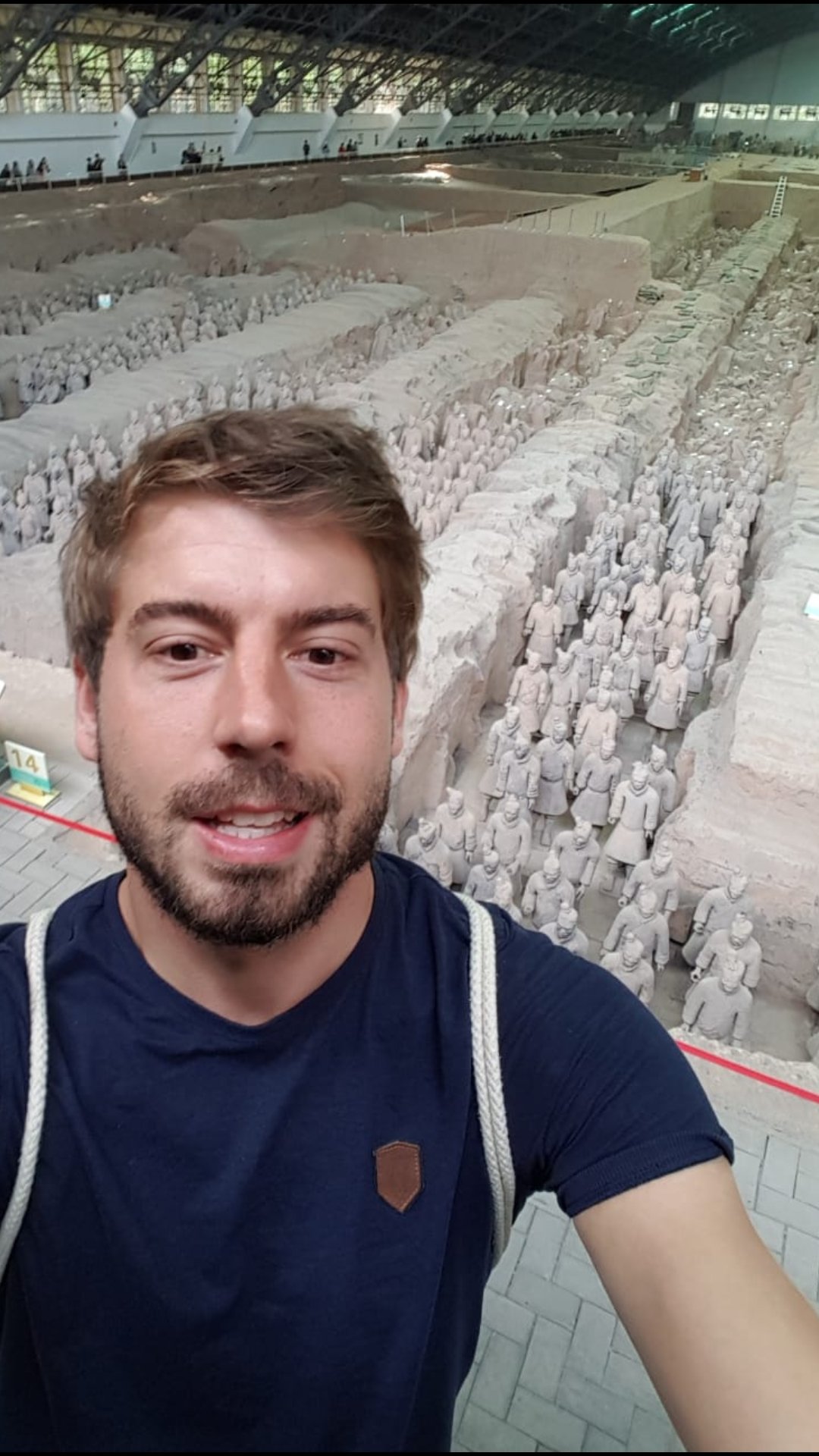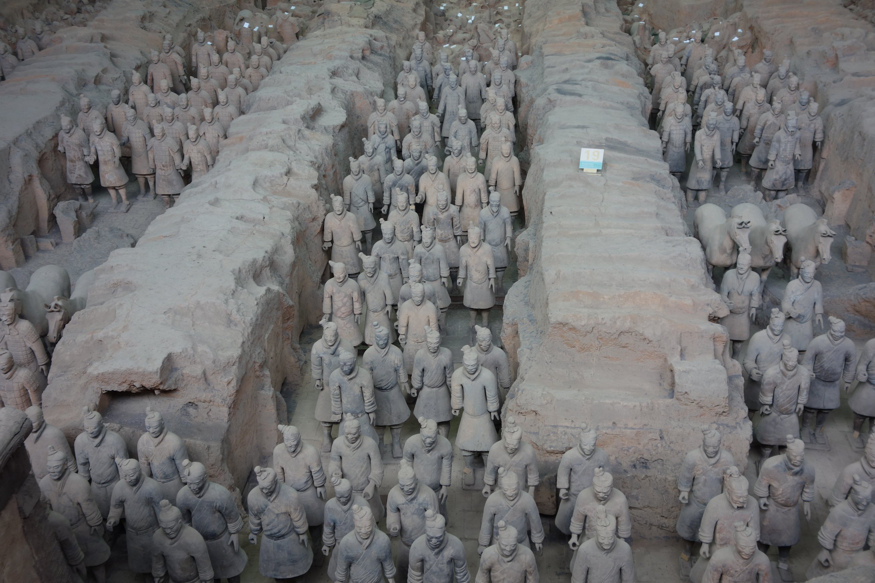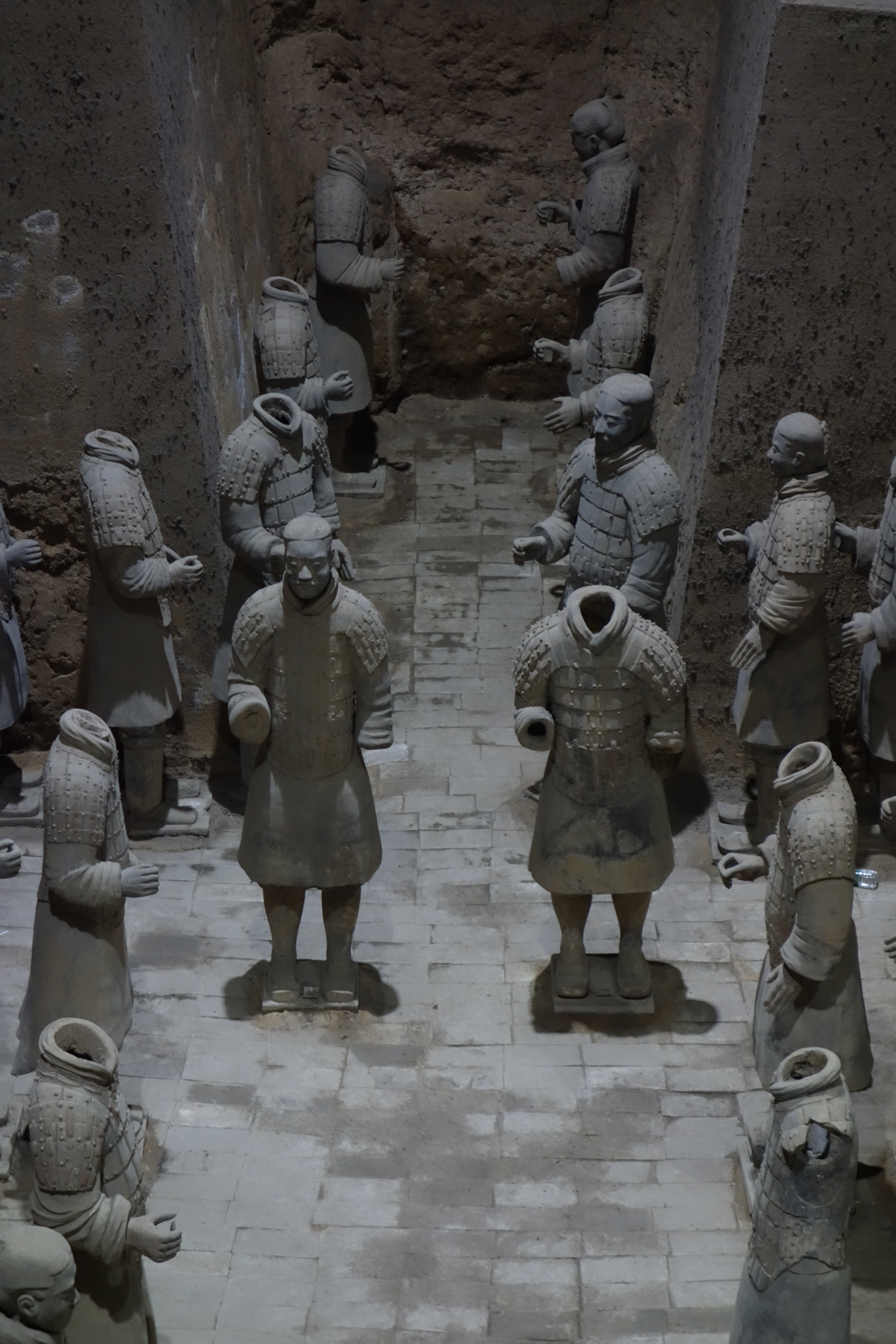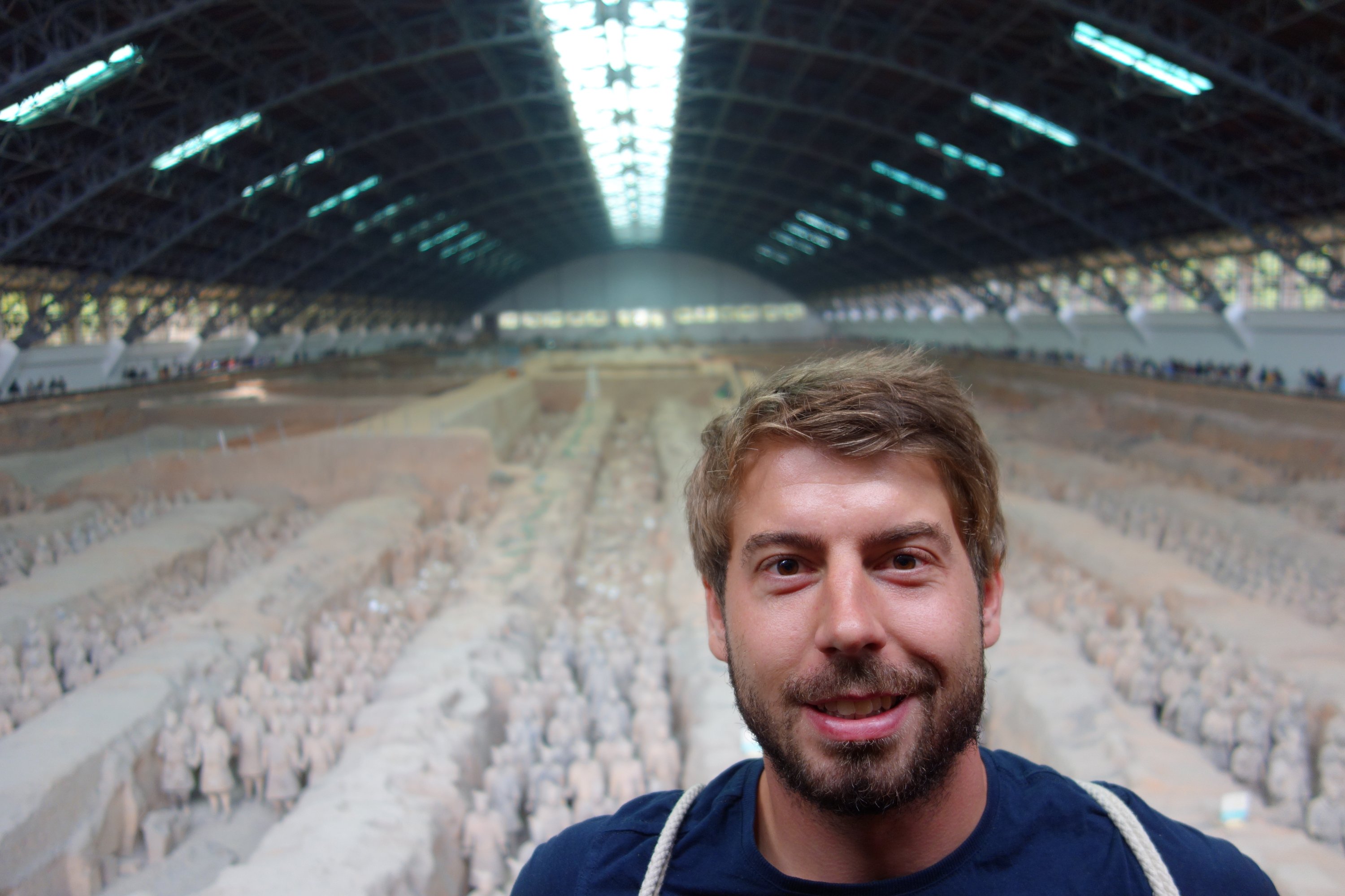 Der erste Emperor von China namens Qin, der China vor über 2000 Jahren vereint hat indem er alle Teile erobert hat, war wohl etwas verrückt. Er hat sich für sein Leben nach dem Tod eine Armee bauen lassen. Insgesamt gibt es wohl circa 8000 Skulpturen. Archer, Pferde, Soldaten und ein paar wenige Generäle.